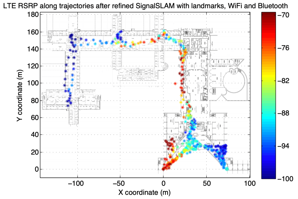 the location of all the users using a modified version of GraphSLAM optimization of the users poses with a collection of absolute location and pairwise constraints that incorporates multi-modal signal similarity. We demonstrate that we can recover the user positions and thus simultaneously generate dense signal maps for each WiFi access point and 4G LTE small cell, “from the pocket”. Finally, we demonstrate the localization performance using selected single modalities, such as only WiFi and the WiFi signal maps that we generated.